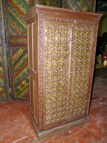 !##Brass Old Door Armoire Hand Carved Teak Wood Cabinet Furniture From India 60x30