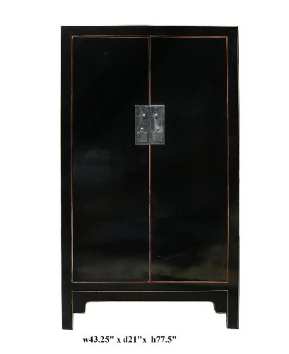 !!!Overview!!! This cabinet has a simple shape with simple clean black lacquer on the surface. The hardware is mordern stylish look . It has movable shelves for accessories storage or as an armoire. Natural wood and hand-sprayed black lacquer may make the surface not perfectly smooth.