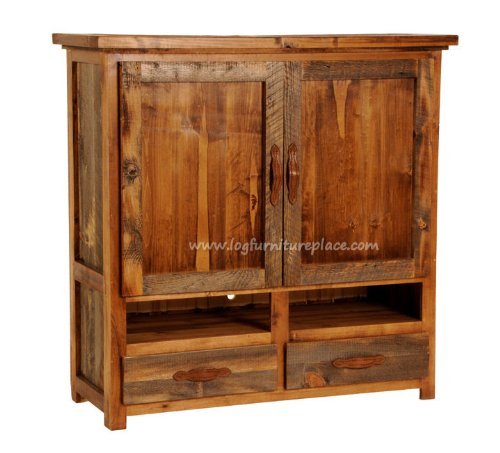 !!!Overview!!! What better way to capture the spirit of the rugged West than with our Wyoming Collection! Bring this authentic rustic feeling into your living room and family room with our Flat Screen TV Armoire. Each piece within the Wyoming Collection has unique coloration & a natural patina. Most of the reclaimed boards have endured ten or more years in the rugged plains and mountains of Wyoming. The furniture has widely varying knots patterns, grain designs, and beautiful colors ranging from rich grays to hints of orange and deep rust. The Wyoming Collection is an innovative blend of reclaimed, weathered wood fused with regionally harvested solid woods. This is perfect for a flat screen tv and appliances with 2 drawers for storage! For added styling detail choose from four striking drawer-pull options such as; Dark Bronze Oval Knob, Contoured Aspen Wood, Faux Antler, and Tooled Leather.