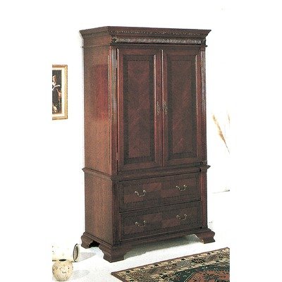 !!!Overview!!! Wildon Home 2804TV Features: -TV armoire. -Audrey collection. -Distressed Cherry finish. -Solid hardwood and veneer construction. -Resin carvings. -Two drawers. -Double hinged wrap around doors. -Includes clothing rod. -Assembly required. -Manufacturer provides 6 months limited warranty against product defects.
