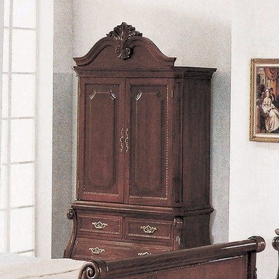 !!!Overview!!! Wildon Home 7024TV Features: -TV armoire. -Sierra collection. -Cherry finish. -Solid hardwood and veneer construction. -Intricate resin carvings. -Double hinged wrap around doors. -Two dovetail drawers. -Two small drawers. -Includes clothing rod. -Assembly required. -Manufacturer provides 6 months limited warranty against product defects.