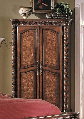 !!!Overview!!! br br strongFeaturesstrong ul liSolid Hardwoods and Wood Veneers liResin Carvings liHoney Walnut Finish liIntricate Carvings liDouble Hinged Wrap Around Doors liClothing Rod Included liAsh Burl Finish liGold Accents ulstrongSpecificationsstrong ul liStephano Armoire Dimensions 56L x 26W x 86H ul.